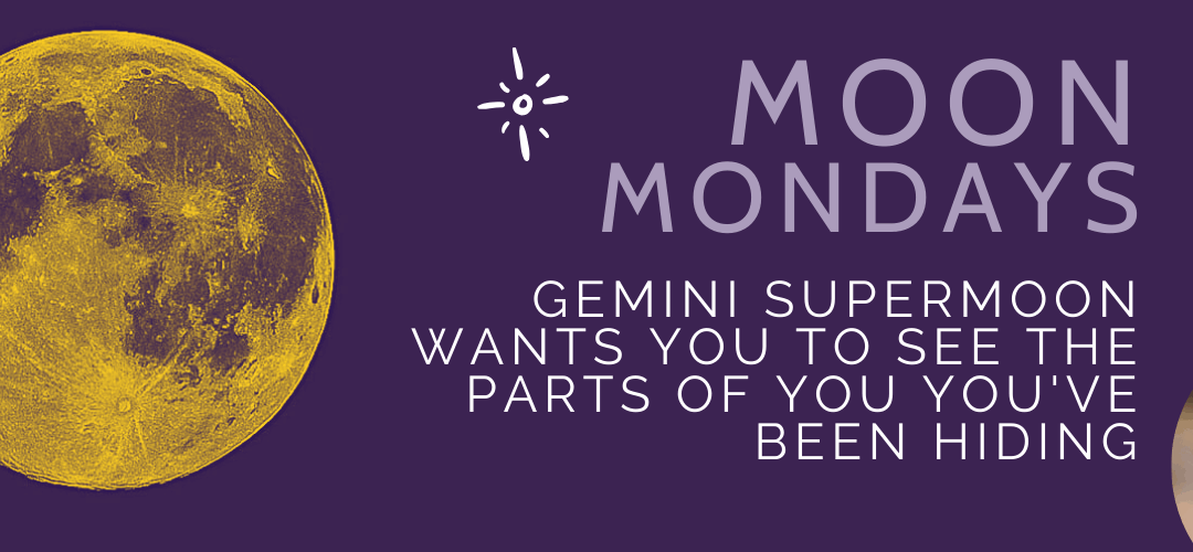 It’s Moon Mondays—and this Thursday brings the Gemini Full Moon Supermoon. The Moon is closer to Earth, so it appears larger and has a bigger impact on the tides and us. But really, it’s your chance to have some serious fun and get out of your comfort zone. Reconnect to your curiosity and your wholeness.